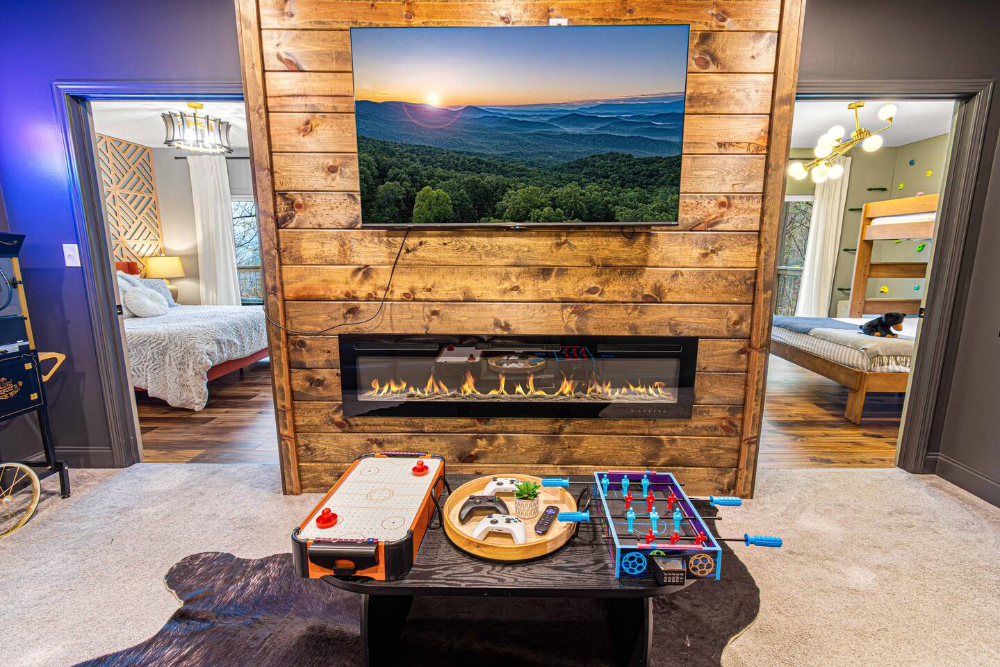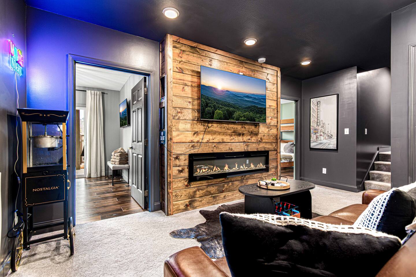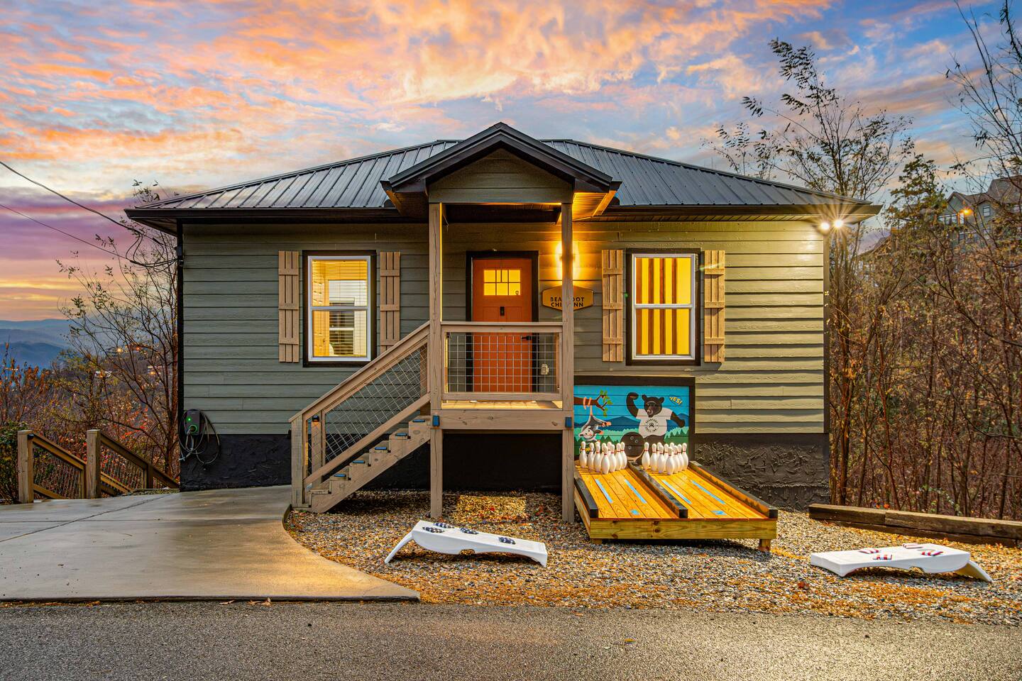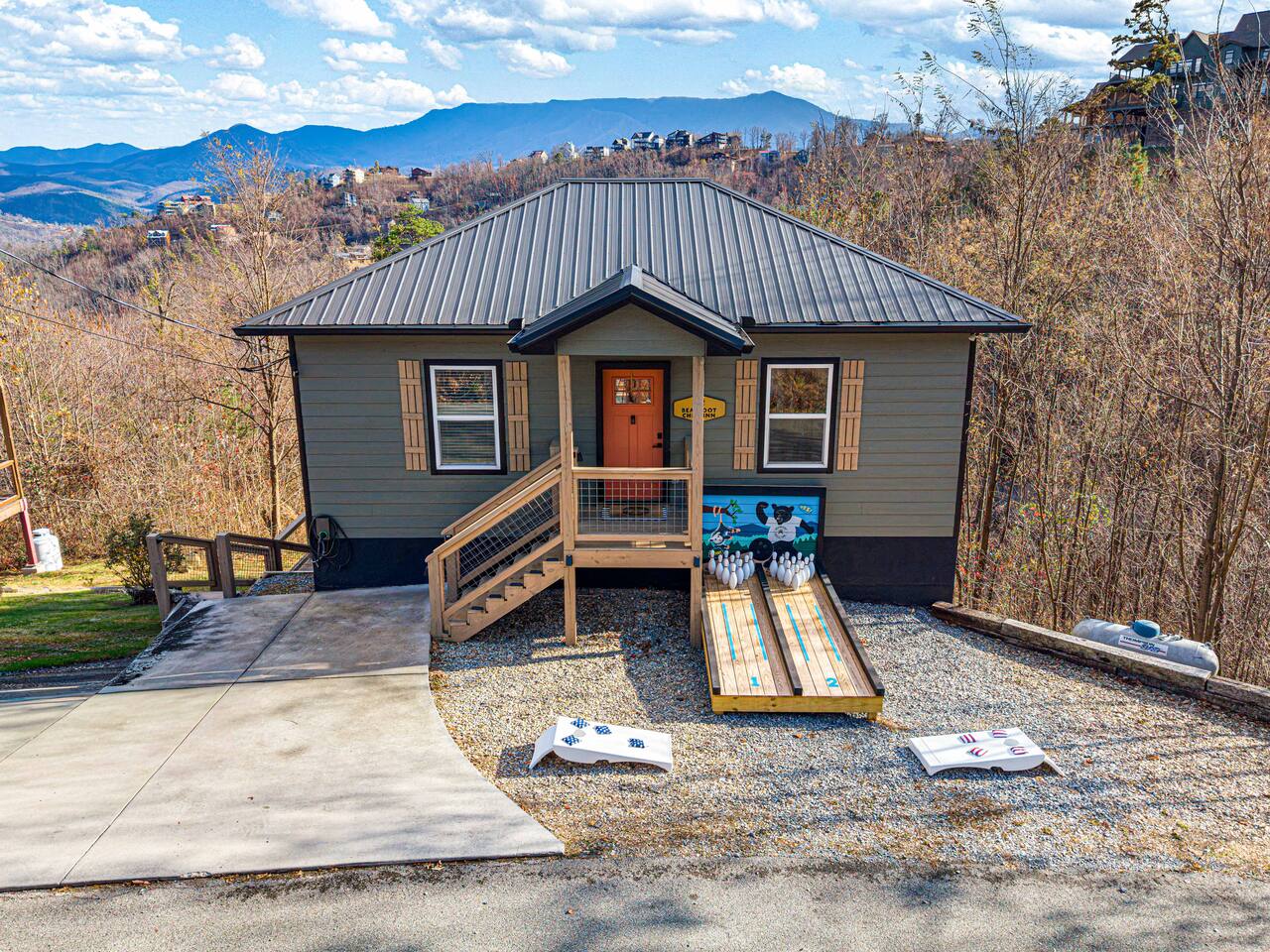 Welcome to Bearfoot Chill'Inn, your perfect mountain escape nestled in the heart of the Smokies. Cabin offers breathtaking views of the Great Smoky Mountains and is packed with amenities to make your stay unforgettable. Unwind in the hot tub while soaking in the mountain views, challenge friends to a game of outdoor bowling, or gather around the fire pit for cozy evenings under the stars. Inside, enjoy a fully stocked coffee bar, a multi-arcade system, and an Xbox for endless entertainment.