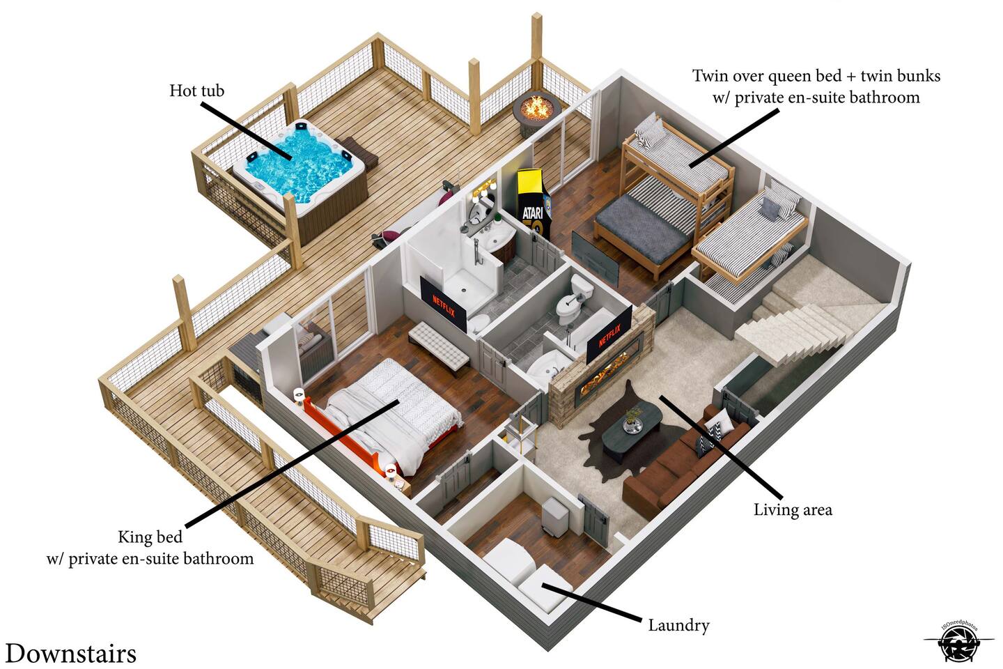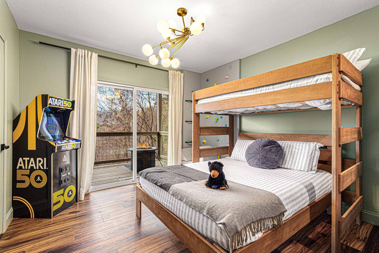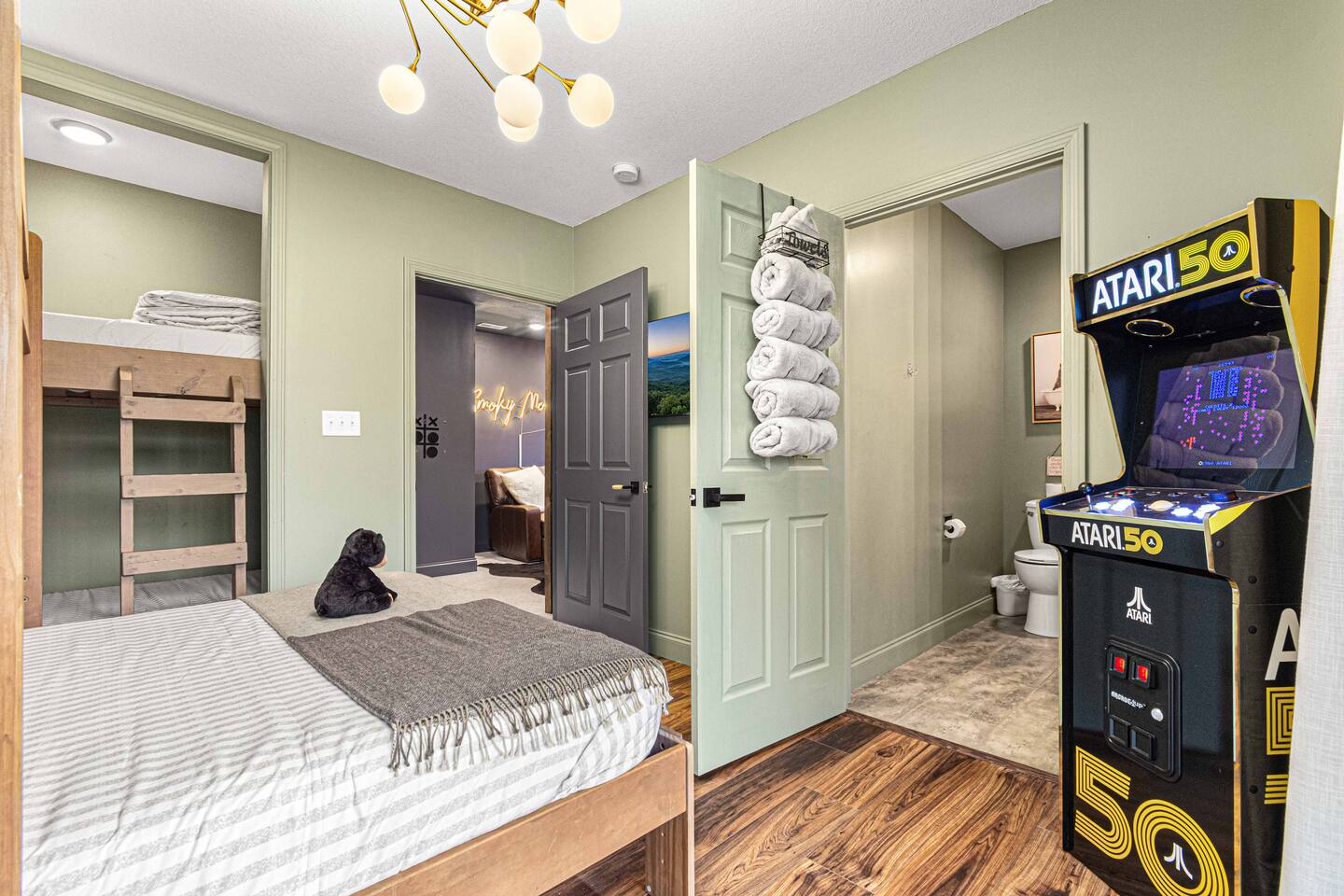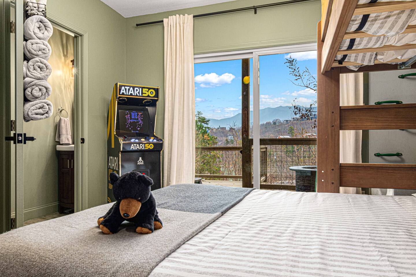 Welcome to Bearfoot Chill'Inn, your perfect mountain escape nestled in the heart of the Smokies. Cabin offers breathtaking views of the Great Smoky Mountains and is packed with amenities to make your stay unforgettable. Unwind in the hot tub while soaking in the mountain views, challenge friends to a game of outdoor bowling, or gather around the fire pit for cozy evenings under the stars. Inside, enjoy a fully stocked coffee bar, a multi-arcade system, and an Xbox for endless entertainment.